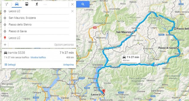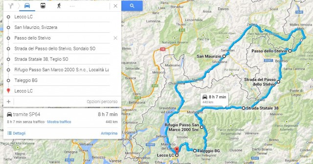 Siccome sono completamente libero quel giorno e vorrei dedicarmi ad una giornata di sano "motamento" pensavo di fare il giro più semplice possibile "ad anello" con partenza ed arrivo a Lecco passando per Stelvio e Tonale.