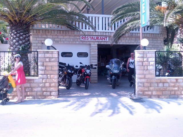 e prima di giungere all'albergo prenotato dobbiamo attraversare il traffico caotico della turistica Trogir, una delle tante isolette della costa dalmata collegata alla terraferma da ponti: il passaggio (obbligato) sul ponte è una specie di imbuto nel quale la miriade di turisti fatica a passare. Le temperature delle nostre moto si alzano, quelle dei nostri corpi pure, vola qualche "vaffa" ad automobilisti im...branati