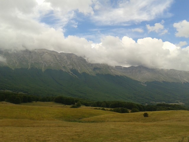 Svegliati un po' tardino per via della notte movimentata decidiamo di tagliare dal programma il percorso sulla riviera e di salire direttamente sulla Majella. Anche qui indicazioni nulle, ma riusciamo a trovare la giusta direzione. Il tempo di fare benzina e saliamo fino in cima (1860 mt). Peccato per il tratto tra Passo Lanciano e la Majelletta davvero in pessime condizioni. Qualche foto e ci fermiamo a pranzo allo Chalet, dove il cibo è gustoso e le nuvole ci creano intorno una cupola di nebbia. Si riparte scendendo lungo il versante occidentale accompagnati di nuovo dal sole, il paesaggio è molto bello, ampie distese, curve divertenti. Un'altra piccola divagazione (e so' 3.. chiedo venia