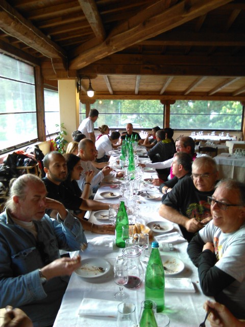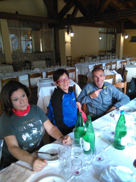 Arrivati ad Albaneto Tonino ci ha rifocillati a dovere con antipasti gnocchi, gricia , arrosti vari dolce caffè e ammazzacaffè