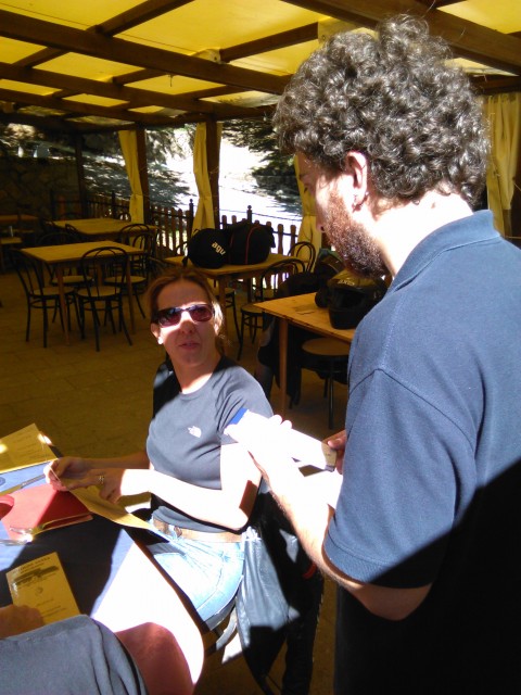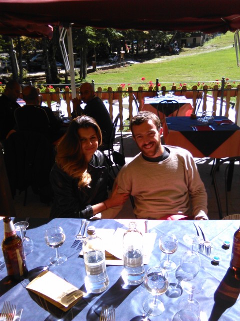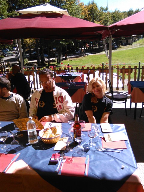 in vetta (con almeno una ora di ritardo per colpa del sottoscritto per la mancata svolta a destra) il gruppo si è diviso (quasi a metà) tra chi ha optato per tagliere e panini (stef ed altri) e chi ha preferito mettere le gambe sotto il tavolo (io, maiuaif ed altri)