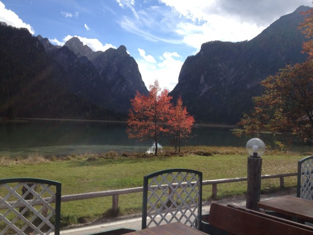 Ci fermiamo a mangiare al lago di Dobbiaco, e dopo ci facciamo un'altra valangata di passi fino al tramonto, una vera libidine.