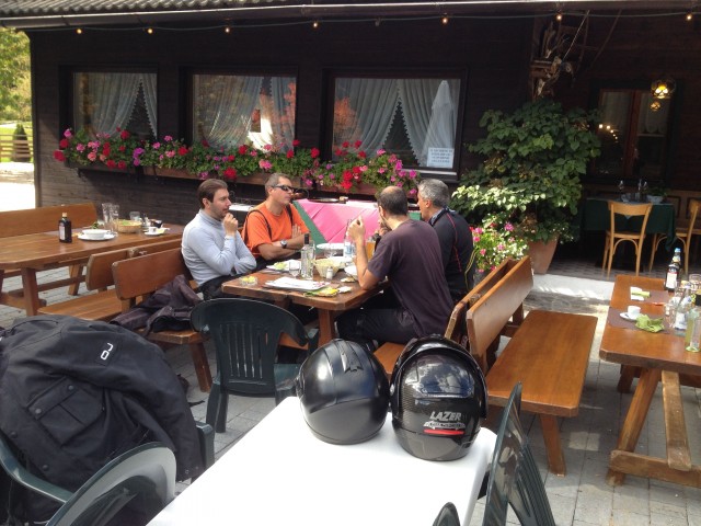 La mattina seguente, dopo le immancabili pulizie alla moto, in una nebbia mattutina in diradamento, partiamo per il nostro giro. Le strade sono buone, il tempo migliora ora dopo ora, il sole ci accompagna su e giù per i numerosi passi percorsi, il divertimento e' alle stelle.