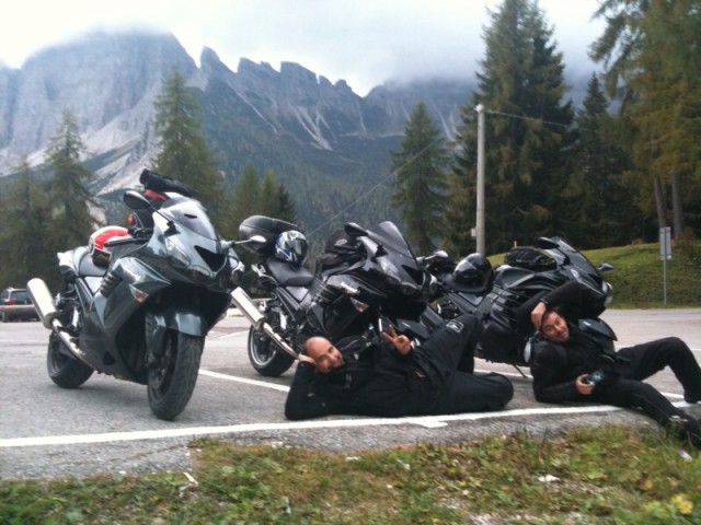 Prendiamo qualche goccia d'acqua, ma siamo Kawalieri forti ed andiamo avanti. Proseguendo la situazione migliora, esce il sole, le condizioni dell'asfalto sono buone, tali da consentirci una guida divertente. Pranziamo sul lago di Anterselva con un bel sole e ci avventuriamo a percorrere numerosi altri passi da urlo. Giunti a Corvara le condizioni meteo peggiorano il tempo minaccia pioggia e così sarà. Noi dovevamo affrontare due giganti il passo Gardena ed il passo Sella, li abbiamo affrontati in un paesaggio surreale tipico di alcune tappe del giro d'Italia sotto la pioggia, la nebbia e le nuvole basse, che scenario meraviglioso.