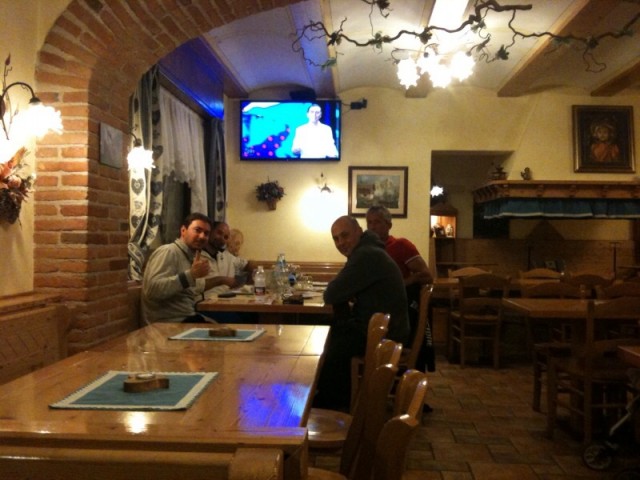 Ceniamo e passiamo insieme una splendida serata, confidando in un miglioramento, il cielo si stava aprendo. L'anno precedente eravamo arrivati con il sole e poi avevamo trovato la neve, ci siamo detti quest'anno arriviamo con la pioggia speriamo di trovare il sole ......