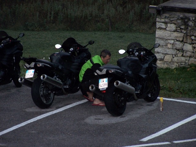 La mattina seguente, dopo i saluti ed aver aiutato Roberto a ricaricare la moto sul furgone, verso il quale ancora mi scuso per il mancato giro di domenica, partiamo per tornare a casa, senza ovviamente farci mancare un'altra dose massiccia di passi che ci conduce fino a Bolzano dove imbocchiamo tutti insieme l'autostrada facendo pausa pranzo all'autogrill . Lasciamo il mitico Stefano al bivio per la A4, il grande Cavillo ci scorta invece fino a Modena, allungando il suo percorso, e noi proseguiamo poi fino a Roma, dove giungiamo in nottata.