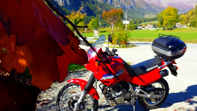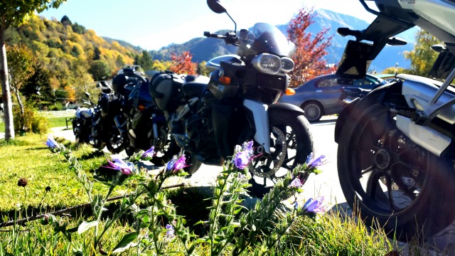 Qual è il colore di due moto davanti a me? Dei due motociclisti davanti a me, uno da solo, il Sensei, e l'altro con compagna, che hanno anni di moto sulla monopola dell'acceleratore, cui però oggi il tempo di aprire era solo quello dedicato alla mente, attraversando l'autunno della Vallé?