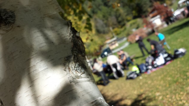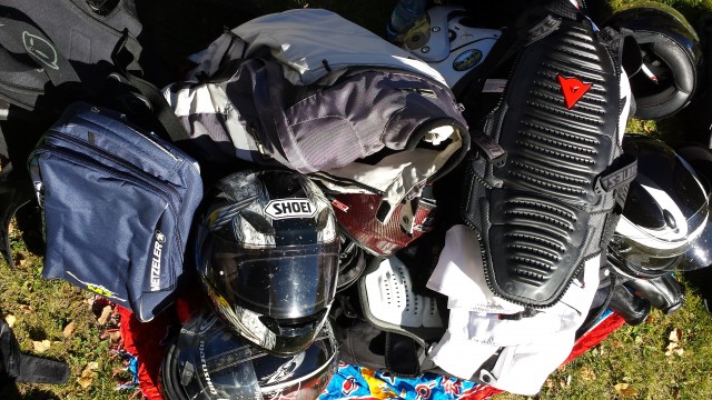 Qual è il colore delle giacche, caschi, borse, ammucchiate su un prato, sopra un telo stupendo, di una motociclista che quando le dico "son lenta come una lumaca...", lei, mi risponde con un sorriso?