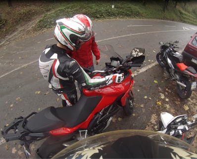 strada bagnata e molto scivolosa, tante foglie marce proprio sui tornanti... ma tutto bene!! noi siamo Piloti Esperti!!