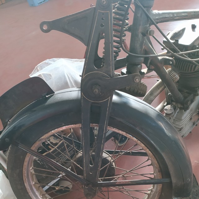 Oggi sono andato a trovare un amico con il quale sto collaborando, per portare agli antichi splendori ma facendo un restauro conservativo, una Bianchi 250 F.D.normale , che era nata rigida ma probabilmente nel dopoguerra era stata resa elastica con quella modifica che si diceva della Benelli.