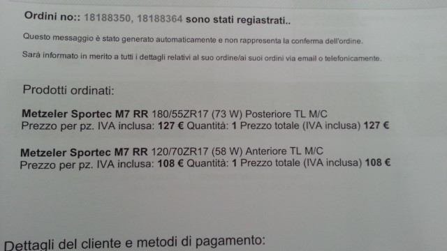 e per dirti che ognuno ha le sue preferenze e sensazioni e tutto dipende da come sei tu in sella e da cosa ti dicono le chiappe. AnS. adora le Dunlop, a me non erano piaciute, ma sono convinto siano ottimi pneumatici. Va a gusti