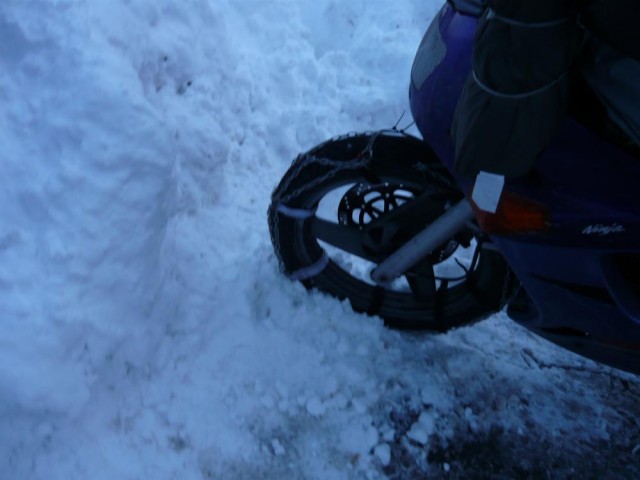 Alla fine la neve era solo quella ma per paura di trovarne altra non ho smontato le catene, quindi mi son fatto 10 km a 25 km/h