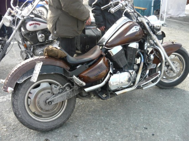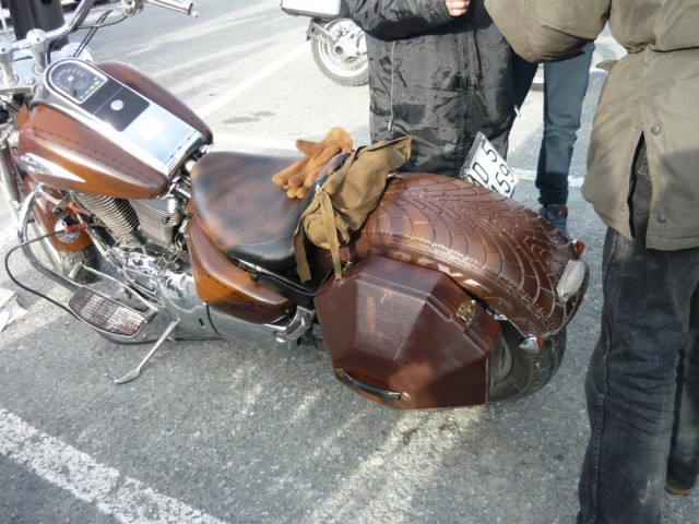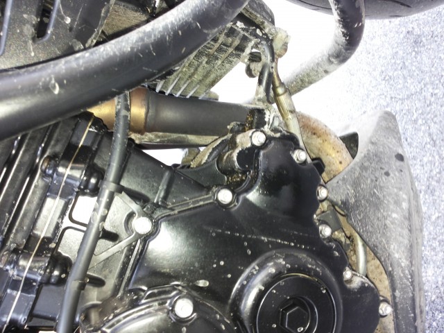 Un ciclista temerario gli da una mano ad raddrizzarsi mentre io cerco di mettere la mia Tigre sul cavalletto, e poi li raggiungo per aiutare.