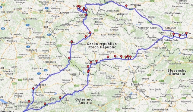 a) Io non sono riuscito a fare tutto il giro come pianificato poiché, visto il poco tempo, non sono risalito sino a Dresda ma ho tagliato prima per Praga. Ho infatti saggiamente deciso di fermarmi un po' a Cracovia e a Praga.