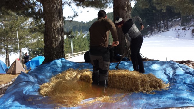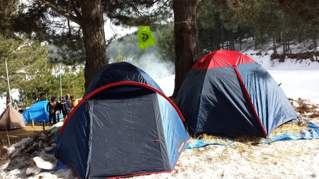 Montate le tende, abbiamo iniziato a costruire i primi arnesi per rendere più comodo possibile il nostro soggiorno