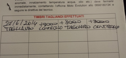Il secondo service è avvenuto dopo 12 mesi ma a 10000 scarsi (prima scadenza temporale). Da allora è passato esattamente un anno ma solo 3500km. Poichè io non godo più di garanzia, non ho più la premura di rispettare scadenze temporali e preferirei attendere di percorrere almeno 12000km prima del terzo service, il desmo, che al ritmo attuale avverrà più o meno tra un annetto.