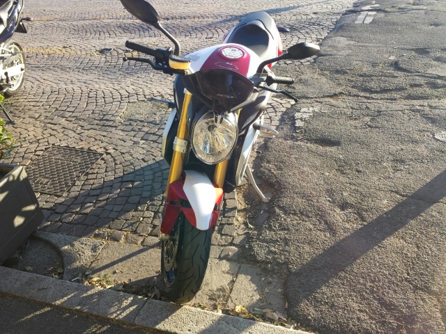 Giovedì sera in garage ho iniziato subito a montare porta targa , leve freno/frizione ,specchietti ,qualche adesivo e qualcosina in carbonio . Ora aspetto che mi consegnino parafango posteriore cover scarico e i vari pezzi del forcellone in carbonio che ho mandato a lucidare ( sull'800 li avevo con finitura opaca).