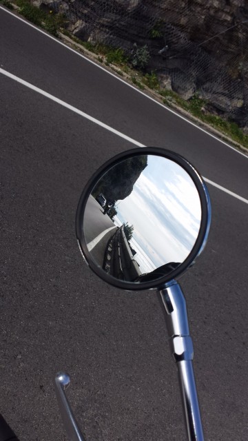 Ma che cos' è viaggiare al mare!?! Che bello é avere il mare nello specchietto retrovisore???? Mi fermo perché voglio fermare quel che vedo. È bellissimo!
