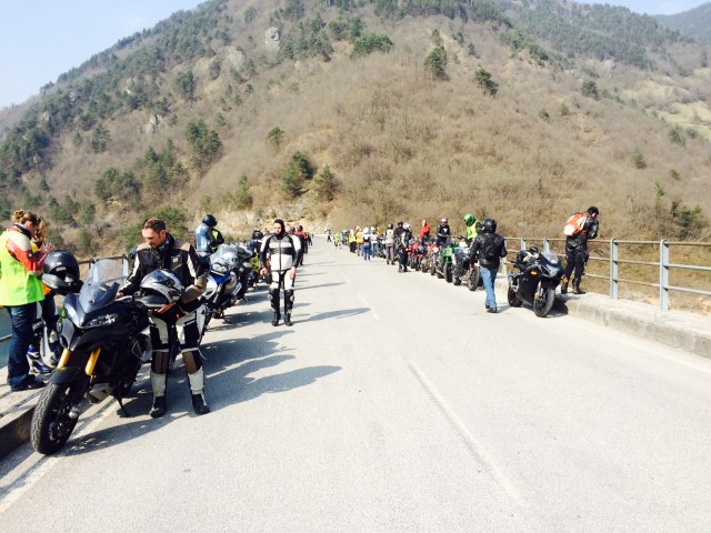 Alle 11:00 partiamo puntualissimi per il primo motogiro, ci vedrà percorre le strade che noi amiamo di più: Ledro-Idro-Valvestino. Per fortuna la Gardesana è deserta e non si fa fatica a tenere unito il gruppo, a tal proposito devo fare un immenso