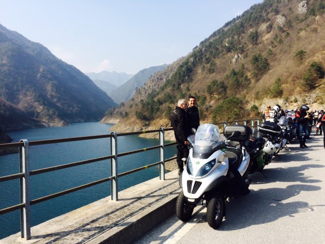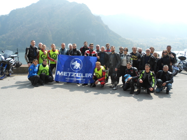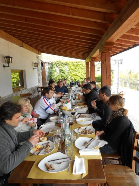 Dopo un bel pò di curvette si arriva al ristorante sul lago, ci si concede una foto di gruppo prima di metterci seduti: