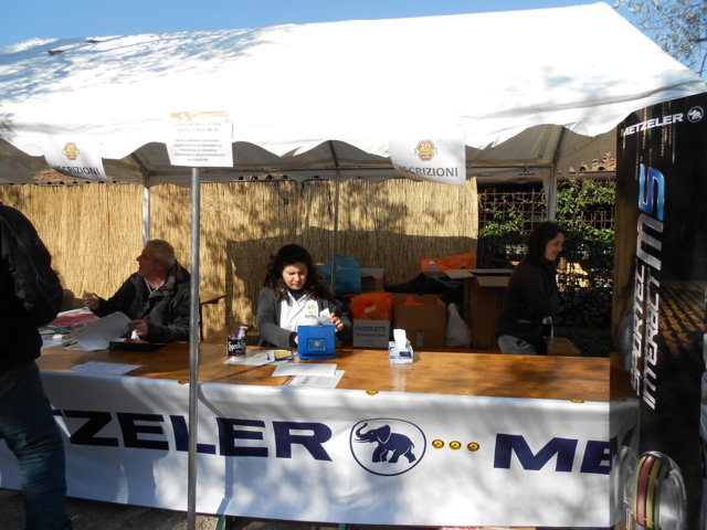 ) e finiamo di disporre le ultime cose in attesa dell'arrivo di tutti. Poco dopo il mio arrivo ci raggiungono anche Ilaria ed Elisa in macchina! La Gardesana semi-deserta ed il piedino leggero d'ilaria fanno si che alle 9:00 sia pronta in postazione dietro al bancone delle iscrizioni!