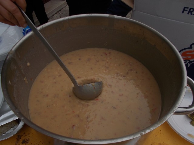 . Gino ci ha fatto trovare la piazza preparata con panche e sedili dove abbiamo potuto degustare tante pietanze che ognuno di noi ha portato, in più però ....il Giggiotto ......ci ha stupito con pane di casa, lasagne, fagiolata e non ricordo che altro