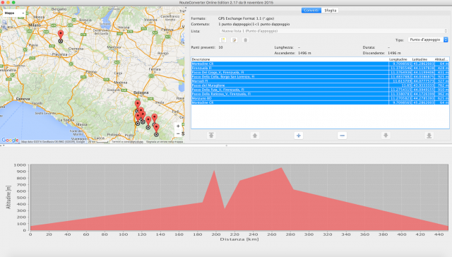 in ogni caso ha implementato la mappa di google quindi volendo si può fare il percorso direttamente da li per poi esportarlo in gpx, kml, itn ecc...