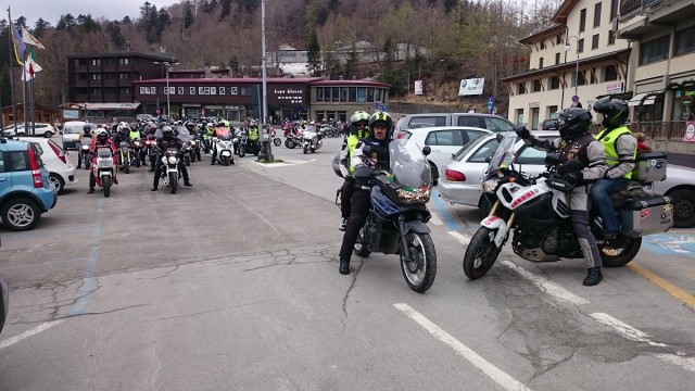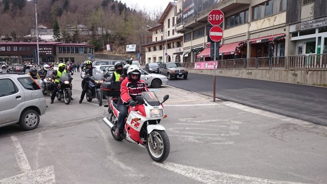 Si parte tutti.... e si fila liscio all'Abetone, la giornata tutto sommato tiene botta, poteva andare peggio...si arriva.... si arriva su nel piazzale, manca l'ultima svolta a destra.... intravedo il piazzale, gia' invaso da dieci minuti dagli amici toscani...
