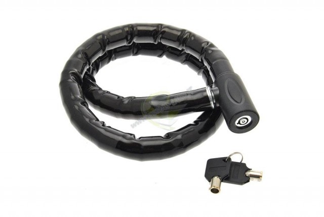 Per l'antifurto una catena rivestita utile anche per i casci e un bel lucchetto di ottima qualità alla ruota anteriore.