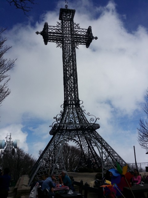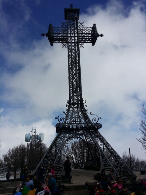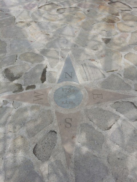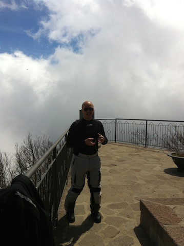 Arriviamo in cima e ci godiamo... Il sole caldo, sì; il panorama: no! Perché mentre sopra di noi il cielo è sereno, tutto intorno la nebbia è fittissima e quindi non si vede nulla più della scarpata che scende ripida sotto il belvedere... E vabbé, ci si tornerà
