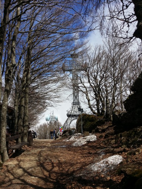 Da qui prendiamo per Roccalbegna e poi si arriva dritti in vetta... Ci aspetta una piccola camminata sulla neve in realtà per salire in cima, ma il cielo tutto sommato è sereno, il sole caldo e i 1734 metri della vetta sono lì che ci aspettano. Damiano e i suoi stivali da pistaiolo sulla neve quasi quasi ci regalano uno show inaspettato