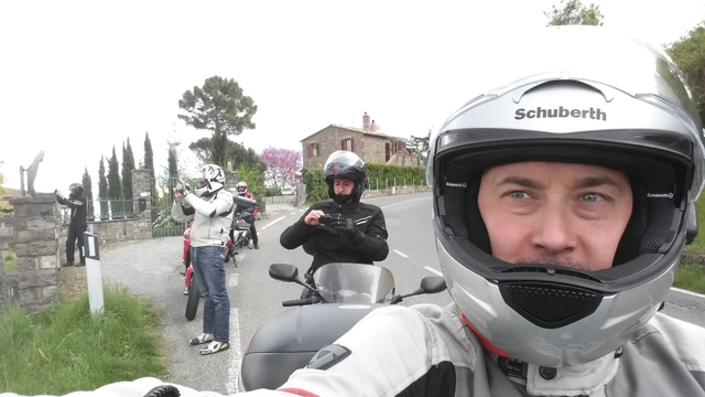 Lentamente torniamo sulla strada per Arcidosso e, sarà la differenza dalla vetta e dai suoi 12º, inizia veramente a sentirsi il caldo. Decido di fare una fermata imprevista ad Arcidosso per togliere tutti gli strati dal completo e per concedermi una redbull. Gli altri non mi sembrano affatto dispiaciuti per la sosta!