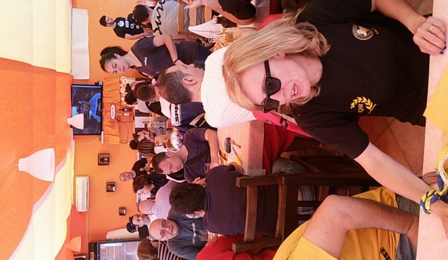 Saluti baci e abbracci a volti amici e ai nuovi arrivati , 4 chiacchiere e una birretta per sciogliere il ghiaccio e .... Tutti a tavola ......