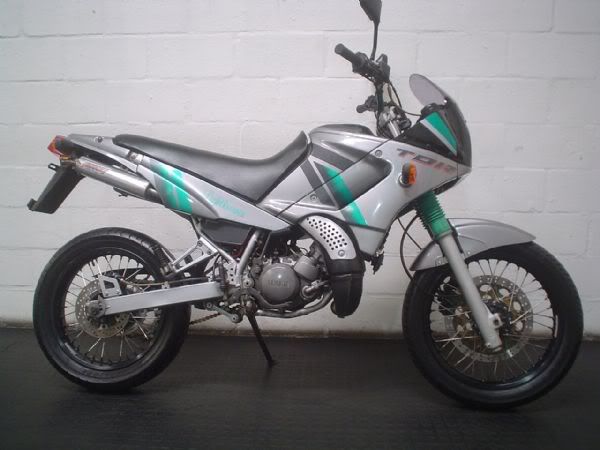 Yamaha TDR125 Lightburner (foto non mia, ma la livrea era proprio quella. Terminale a parte, quello originale era più bello di questo!)