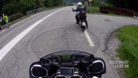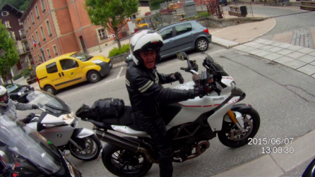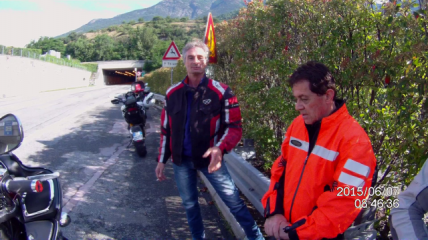 8,40 Ci incontriamo con Valer e facciamo conoscenza. Faccia simpatica, espressione accattivante, argomenti trattati....è un motociclista doc.
