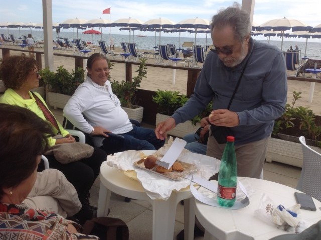 caffettino e via alla volta di Terracina. Passeggiata piacevole, arriviamo al bar Milano dove troviamo And-Way con la moglie ed una coppia di amici. E aridaie baci e abbracci