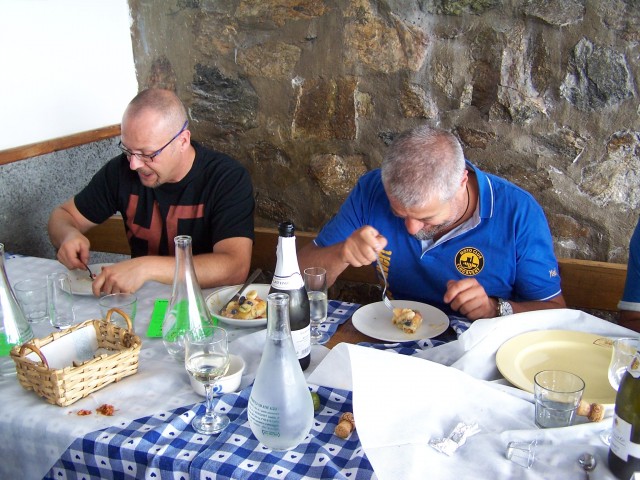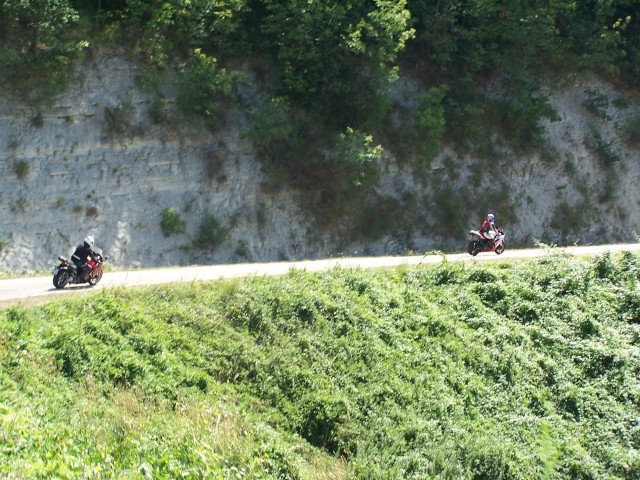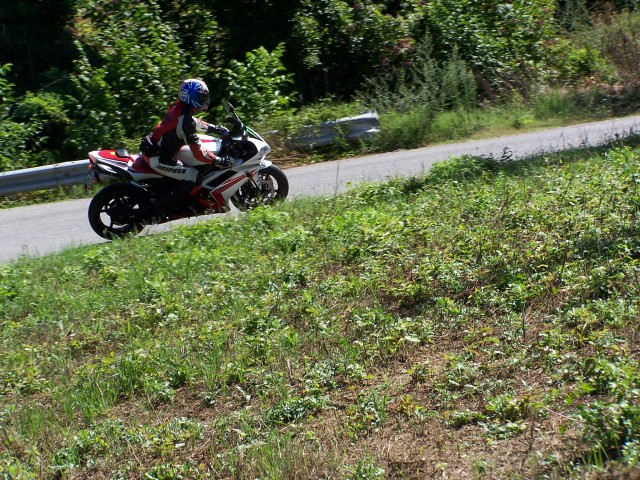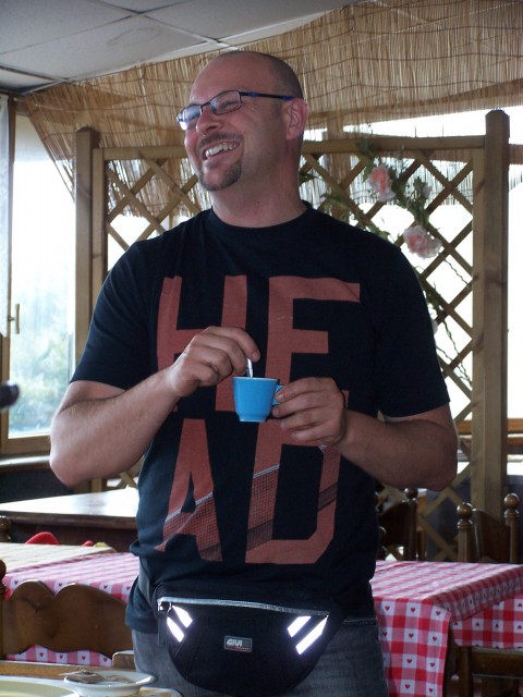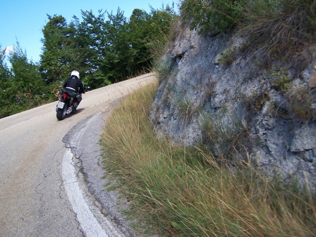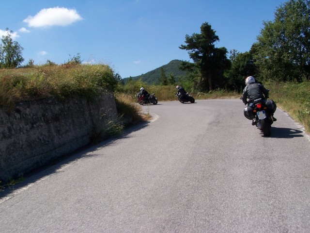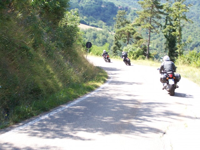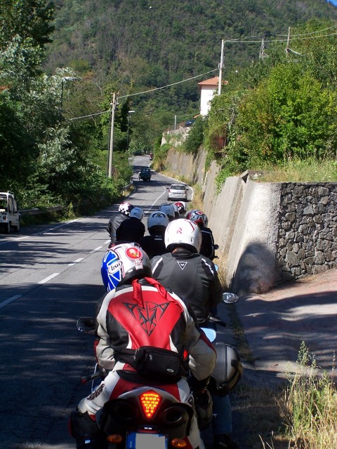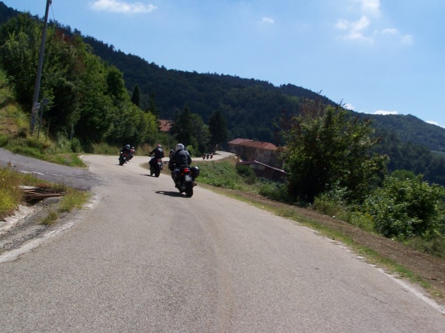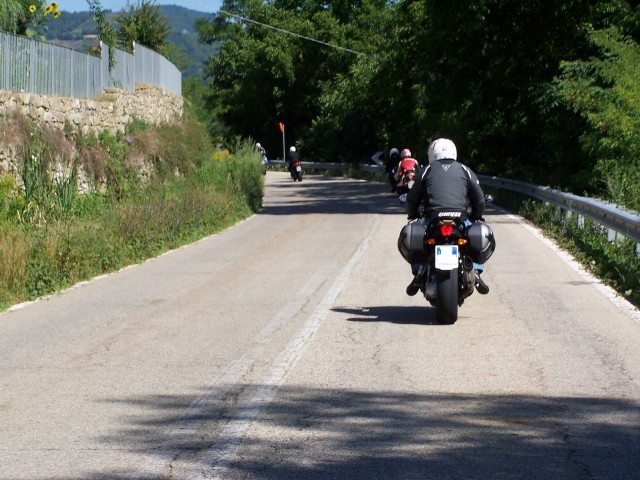Strada splendida dove ci divertiamo parecchio. Sosta caffé e quattro chiacchiere dopo aver ricompattato il gruppo. Conosco un po' di nuovi amici, chiacchiero con la gatta (al Tinguria ci eravamo solo visti da lontano...), peccato per l'assenza di tami... avrei proprio voluto conoscerla, ci saranno altre occasioni!