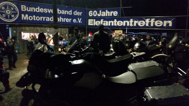 bravi! Avete tutta la mia stima e rispetto! Mi per metto di dare qualche consiglio a chi va su per la prima volta: moffole e calzali sono indispensabili; la legna non basta mai, quando arrivate prendetene in abbondanza (anche per fare il fuoco la mattina dopo); viaggiate sempre insieme a qualcuno, è molto più bello e divertente; fate in modo di non aver bisogno di fare benzina in cima al Brennero perché se nevica di solito lo fa lassù e finché si viaggia nel piciu paciu dell'autostrada (che di solito è sempre ben pulita e salata) va tutto bene, ma quando dovete uscire e mettete le route sulla corsia di decelerazione (che non ho capito mai perché lasciano sporca) e un attimo..idem per il piazzale della ex dogana dove farete la vignetta (sarà spassoso andare in moto vedendo la gente che vi scia di fianco ma secondo me lo è almeno altrettanto sciare e vedere un pirla che si sta cagando addosso nel tentativo di risollevare 250 kg di moto e bagagli) nel caso decidiate comunque di andar per terra (una legge non scritta dice che se lo farà il pistola che vi precede lo farete sicuramente anche voi) cercate di sbattere sul lato destro, così a fottersi sarà il quasi inutile pedale del freno dietro, piuttosto che il pedale del cambio (altrimenti finisce che a solla ci arrivate in prima quando il raduno è già finito). In più mi sento di dire a chi è indeciso che chiunque abbia solo mai pensato di andare all'elefantentreffen almeno una volta nella vita finirà per andarci veramente oppure pentirsi per tutta la vita di non averlo mai fatto.quindi coraggio! dulcis in fondo volevo far notare un altro aspetto nascosto. Solitamente per questo viaggio si pensa di trovare problemi per strada oppure la, direttamente sul posto...ecco, sappiate che qualche problema potrebbe viaggiare di fianco a voi direttamente da casa...quindi chi di voi avrà l'onere e l'onore di ospitare in tenda il sig.dtruck si raccomandi bene con il personaggio che quando rincasa alle 3 del mattino intonando i canti tipici della località, una volta che è entrato in tenda, LA DEVE CHIUDERE!!
