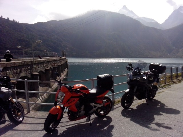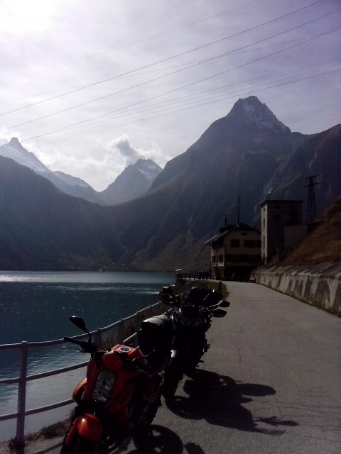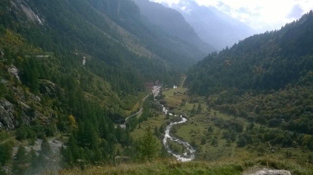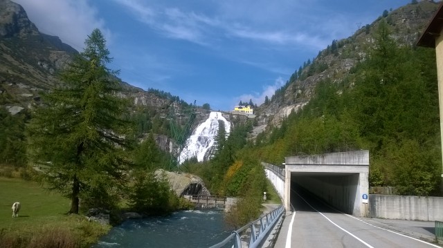 Decidiamo di saltare Mergozzo, sarà per un altra volta, e di risalire la val d'Ossola tra tratti noiosi e qualche curva piacevole verso la val Formazza. Finalmente la strada si fa bella e anche il tempo si apre.