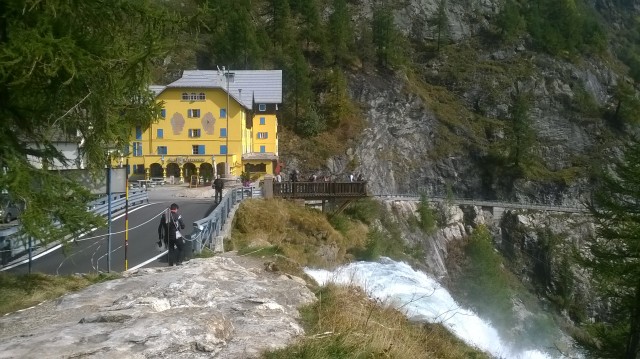 Arriviamo sotto la cascata del Toce, che credevo scarsa d'acqua, e la troviamo invece nel massimo dello splendore. Qualche foto ed affrontiamo l'ultimo tratto di salita affamati. L'hotel "cascata" rappresenta il nostro miraggio.