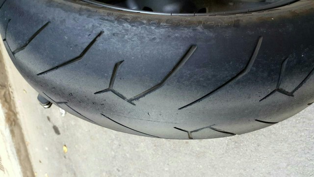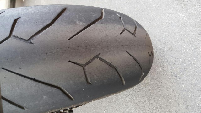 Fino a 3000 km circa era tutto ok, dopodiché in alcuni punti hanno cominciato a saltare via piccoli pezzi di gomma che lasciavano dei buchini sul battistrada, buchini che avevano dimensioni di 2-3 millimetri circa.