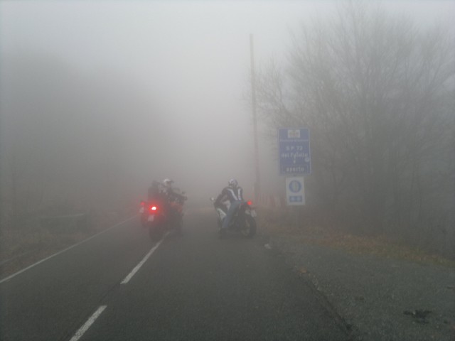 Non essendo propriamente esperti il tempo ha deciso di graziarci regalandoci sole, poca nebbia, pochissimo freddo ed asfalto umido a tratti. (A discapito dello spirito di questi raduni che più son nevosi e meglio è!