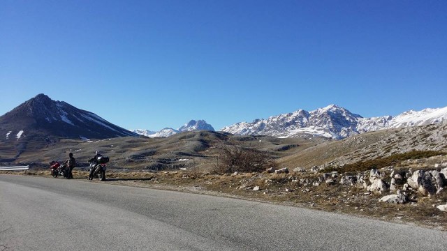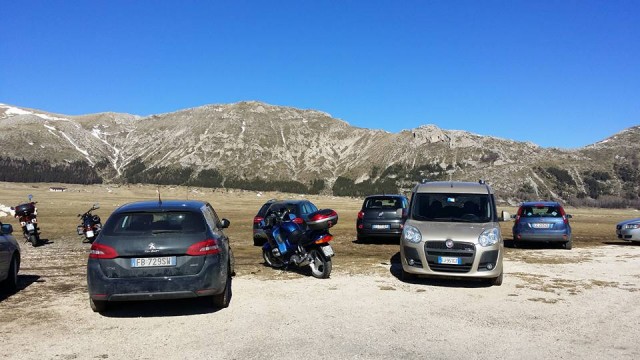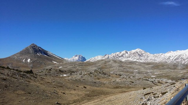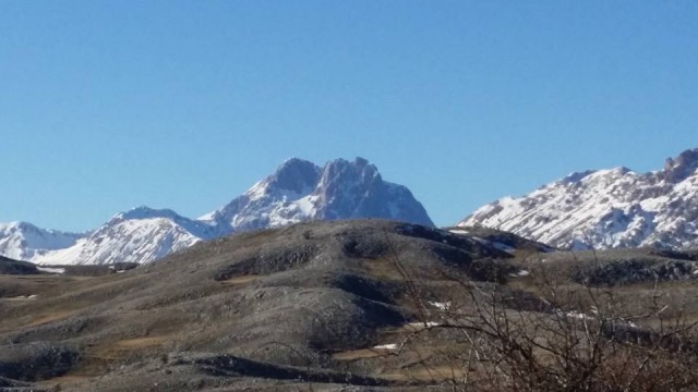 Ma oggi siamo andati oltre: temperature più che primaverili per quei luoghi e tanto, tantissimo sole! Nemmeno una nuvoletta lungo il nostro percorso, strade in perfetto stato e, complice il limpido cielo invernale, una vista mozzafiato lungo tutto l'itinerario, sulle cime comunque innevate dei principali massicci montuosi d'Abruzzo: la Majella, il Sirente-Velino e il Gran Sasso, come difficilmente ero riuscito a vedere!