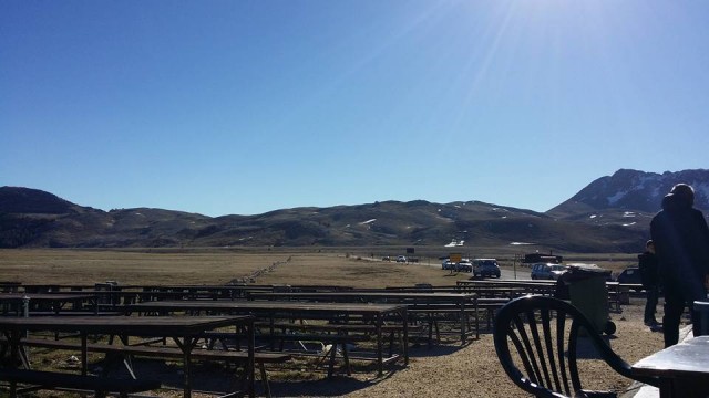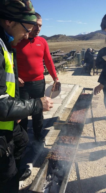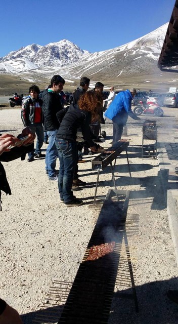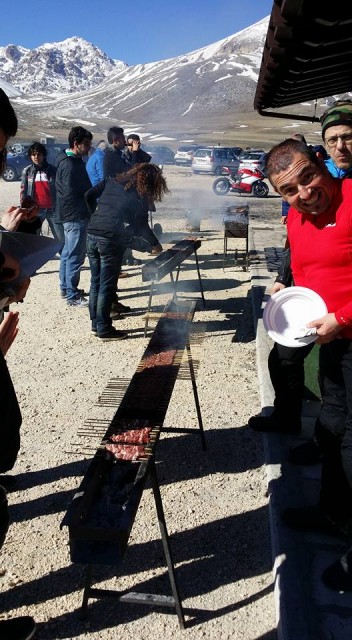 Partiamo puntuali e ci spariamo non stop quei 220 circa km fino al ristoro: alle 13:15 stiamo già ordinando 120 arrosticini