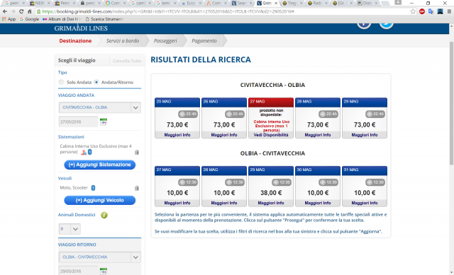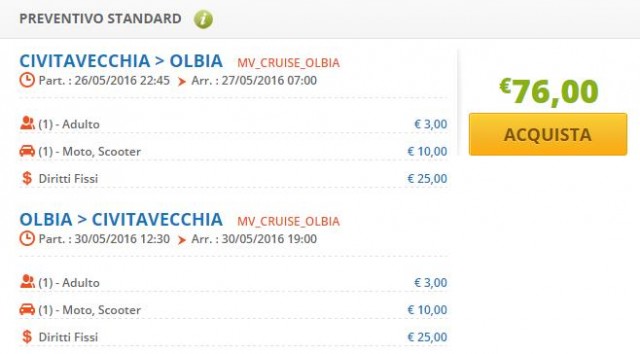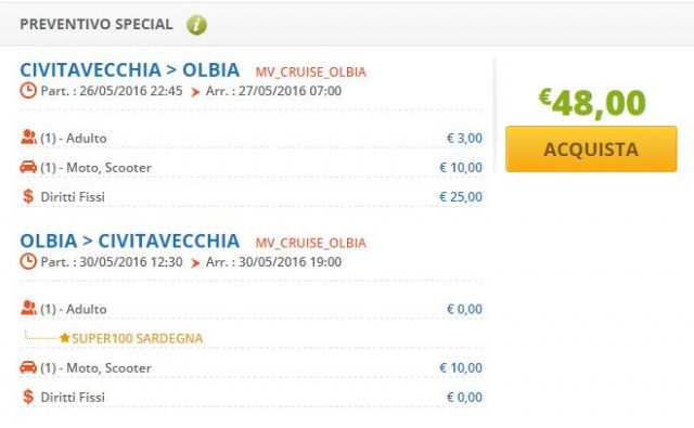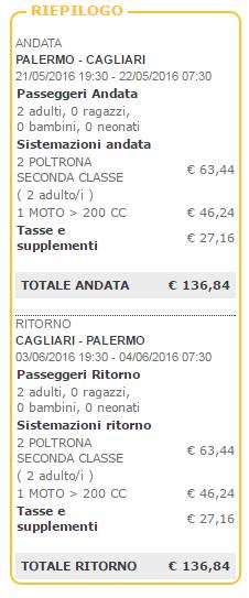 la tariffa si riferisce a 2 persone + moto andata e ritorno: