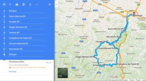 Ciao a tutti, ecco il report del giro fatto sta mattina in solitaria (10/04/2016 tra le 8:30 e le 11:30). Mi sono ispirato all'itinerario 26 del libro della Touring "Italia in Moto" che mostra un itinerario bello lungo per l'appennino Tosco-Emiliano. L'itinerario che ho fatto io è un anello più corto con partenza e arrivo a Bologna: