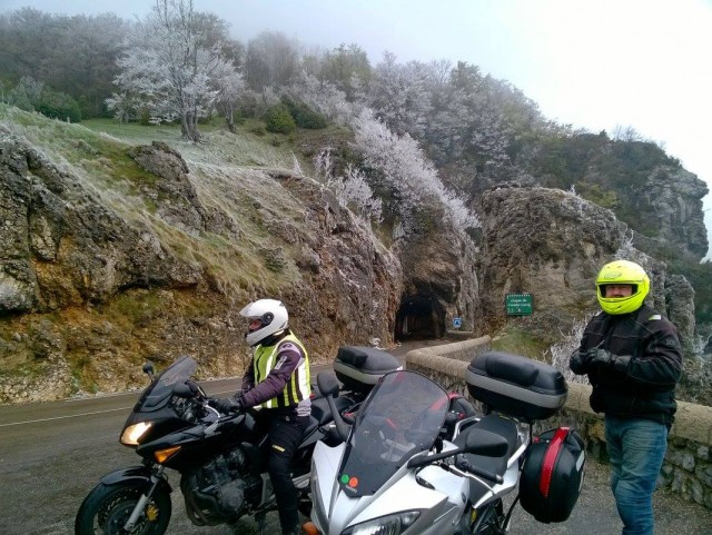 . Ripartiamo in tre alla volta di Avigliana dove il gruppo si completa raggiungendo Federico. Un caffè prima di ripartire (l'ultimo in Italia... quasi fossimo dei condannati) e via alla volta di Susa, Cesana e Monginevro. Sulla strada del Monginevro percorro per la prima volta la nuova galleria, più sicura ma meno "divertente" delle vecchie curve.