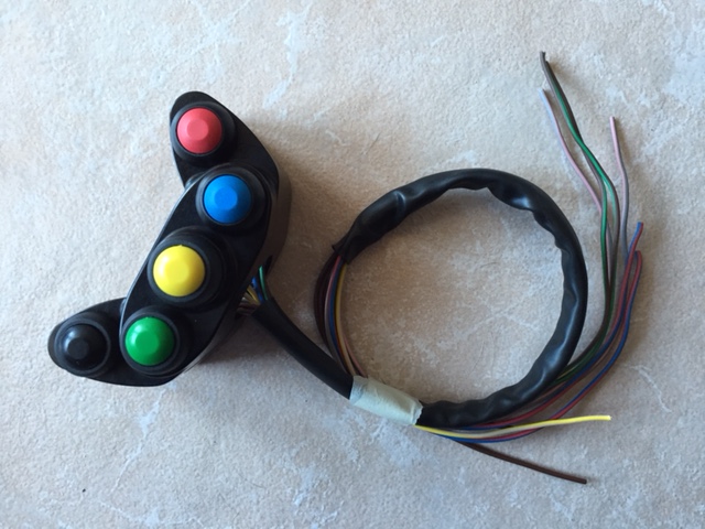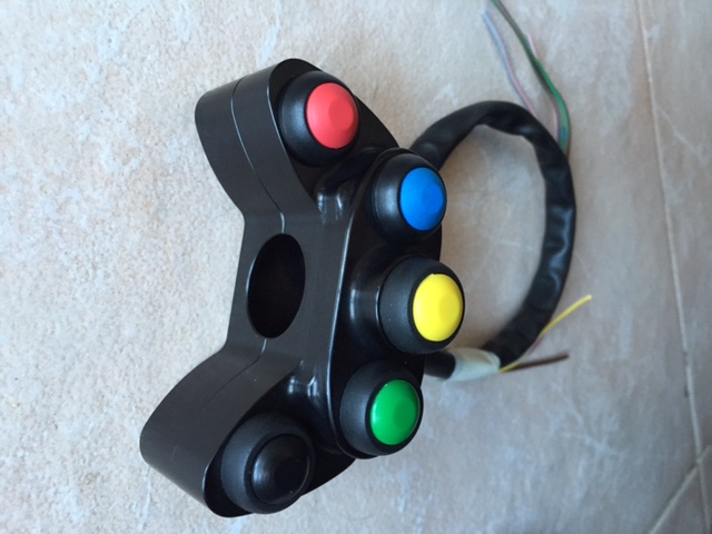 | Note: Vendo pulsantiere a 5 tasti utilizzabili su tutte le moto. Rimanenza di magazzino dopo cessata attivitā agonistica. Ricavate dal pieno in alluminio anodizzato nero. Pulsanti con isolamento Ip67. Potete scegliere la configurazione che preferite di pulsanti (pulsanti semplici o a ritenuta), l'unico pulsante che rimane semplice č il centrale per motivi di spazio interno. La pulsantiera (come in foto) non hanno il foro di uscita dei cavi perchč verrā poi posizionato in base alle vostre esigenze. I fili in uscita sono contenuti da una guaina termoretraibile che una volta scaldata mantiene la curvatura prevista per l installazione sullla moto. Ok la consegna a mano a Parma, pagamento in contanti. Spedizione con celere 3 tracciabile, 12 euro, pagamento bonfico bancario | |