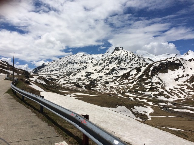 la gente alle stazioni di servizio mi guarda impietosita…si continua cosi,ogni tanto sento qualche gocciola scendere davanti e dietro sotto i vestiti,ho Noè dietro che sfanala per passare….finalmente a Chiavari di botto esce il sole…dopo Aosta la strada per me è nuova e devo dire che il paesaggio non è niente male per essere autostrada.Prima di entrare nel traforo,qualche goccia rinizia a scendere….io sono sempre ultravestito e mi ricordo dei due tunnel in Austria e del loro caldo infernale.