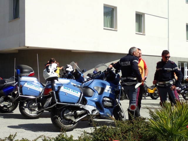 Ci sono gli agenti della Stradale che ci accompagneranno nel giro. Mi chiedo se fare la scorta al Tinga Molise sia considerato una scocciatura (improbabile) o si faccia piuttosto a schiaffi tra colleghi per decidere chi farà il servizio (molto probabile)